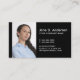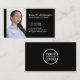 A black, modern, elegant and professional business card design with your name, company name/title and contact information on the front along with a full height of the card photo. Add your own custom logo on the back or remove the logo template. Change background colour, move and resize the logo with the customisation tool. Suitable for corporate staff in any industry.