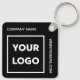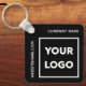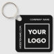 Custom business keychain features your logo and text on the front and back. The text is in a minimal, modern white font on a black background. Upload your logo and personalise the text in the sidebar. White or light coloured logos will work best with this design. If you want the background colour to show through your logo, upload a version of your logo with a transparent background. A great promotional giveaway for customers.