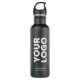 Advertise with your business logo, slogan, company name, website or other custom text on a branded matte black stainless steel water bottle. Replace the sample logo and text with your own in the sidebar. White or light coloured logos will work best with the dark background. Your brand symbol can be any shape. This is eco friendly swag your employees, customers and clients will keep and appreciate!