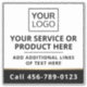 Square vinyl decal for promoting your business or service. Add your own logo and customise the template text. All colours except the golden colour gradient are customisable and you can change fonts, move and resize elements with the design tool. The stickers are fade proof, water proof and scratch resistant.