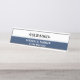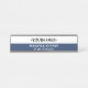 This stylish dark blue Logo desk name plate is easily customizable with your logo, name, and job title.