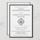 This professional and sophisticated event or party invitation features a simple black and white theme. A sample logo placed near the centre which you can replace with your own custom business or company logo. The corporation or host name is printed above the logo and the event location and date is printed below in a sophisticated grey font. A solid black frame borders the invitation. The back of the invitation features a white background with a thin black frame. It's perfect for an annual fundraiser, retirement party, or other company or business event.
