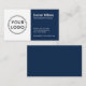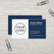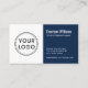Modern white and dark blue business cards with custom logo template. Modern, minimal design. Fonts, font colours and background colours can be changed with the design tool.