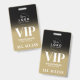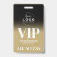 Event Your Logo Black Gold All Access VIP Badge. Great for fashion shows, concerts, large special events like conferences, speakers, and can even work for a birthday party or any other party where you want to make your guests feel special. A simple modern, yet elegant, look with a spot to add your company or even logo up top (or replace with a fun icon if doing for a birthday type of event). At bottom is a bold serif font mixed with simple typography, with VIP, the event name, date, and 'All Access Pass'. You can change all of the text information and colours of this badge (except the top black gradient.