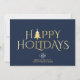 Custom Logo Elegant Simple Blue Gold Christmas Holiday Card