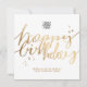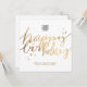 Custom Logo Faux Gold Hand Script White Birthday Card