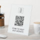 Modern white display sign with QR code and customisable logo area, ideal for businesses directing customers to their website.