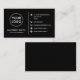 Black or custom colour, modern, elegant and professional business card design with template fields for name, company name/title, logo (photo or other graphic) and contact information including social media icons. Change background colour, move and resize elements with the customisation tool.