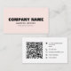 Modern, elegant and professional business card design. Custom colour with template fields for initials, name, company name/title, QR code and contact information including contact info and social media icons. Change background colour, move and resize elements with the customisation tool.