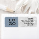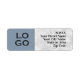 These professional custom return address labels feature a business or company logo on the left, with the address and location on the right. The background is a dusty blue colour beneath the logo, and white marble with silver veins on the right.