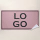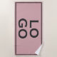 This custom beach towel features a dusty pink or blush coloured background with a black frame. A sample logo is placed in the centre. You can personalise the mat and add your own custom company or professional business logo, or your own image of your choice.
