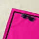 This custom beach towel features a neon pink coloured background with a black frame. A sample logo is placed in the centre. You can personalise the mat and add your own custom company or professional business logo, or your own image of your choice.