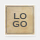 This vintage style, antique looking custom party plate features a rustic parchment paper style background with a sample company of business logo placed in the center. A simple dark gray frame borders the center image. You can personalize the plate to add your own custom company or business logo.