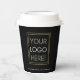 Custom paper coffee cup with lid and company logo. Office supplies for event, conference, small business.