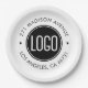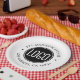 Personalised paper plates featuring your business logo, and a text template that is easy to customise.