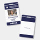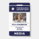 Personalised identification ID card for media press event pass - elegant dark navy blue and white badge with your custom company logo, photo, name, title, and other details - if needed. +++++++++++++ Easy to personalise with your info on both sides! +++++++++++++++ Suitable for corporate journalists, photographers, field reporters, other media employees, managers, executives, and special events staff. +++++++++ Please note that the background colour, fonts, and sizes of text can be changed. You can upload any other details on the backside.