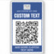 Vinyl decal with your custom logo, QR code and custom text. Dark blue version. Great for business to let their customers scan for more info, deals, online menu, to pay etc. The stickers are fade proof, water proof and scratch resistant. You can change colours, fonts, move and resize elements with the design tool. NOTE! YOU NEED TO REPLACE THE QR CODE TEMPLATE WITH YOUR OWN QR CODE!