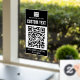 Window cling with your custom logo, QR code and custom text. Great for business to let their customers scan for more info, deals, online menu, to pay etc. NOTE! YOU NEED TO REPLACE THE QR CODE TEMPLATE WITH YOUR OWN QR CODE!