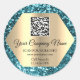 Custom Logo QR Code Promotional Teal Glitter Classic Round Sticker