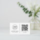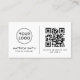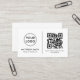 White or custom colour, modern, elegant and professional business card design with template fields for name, company name/title, logo (photo or other graphic), QR code, and contact information including social media icons. Change background colour, move and resize elements with the customisation tool.