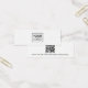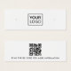 White earring mini product display card with centred custom logo template and QR code on the back. The earring guides can be adjusted by adding and removing spaces in the template field, and by moving the whole element in the design tool.