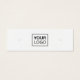 White or custom colour earring mini product display card with centred custom logo template and social media icons. The earring guides can be adjusted by adding and removing spaces in the template field, and by moving the whole element in the design tool.