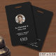 Enhance your corporate security with our Custom Logo Staff Photo Identification Badge. Featuring a customisable employee photo, name, and title on the front, along with your logo, this badge exudes professionalism and functionality. The back offers space for company name and address if lost or found, or personalised text, providing comprehensive identification for your staff. With a sleek black background and white classic typography, this badge offers a modern, minimalist design suitable for any business environment. Elevate your corporate branding and security measures with our customisable ID badge solution.
