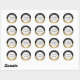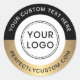 Stickers featuring your custom logo surrounded by a black and golden look (printed image with a brushed metal effect simulated in the artwork) border. Ciustomizable text top and bottom. Move and resize the logo with the design tool. Text, font and font colours are customisable. A great way to create personalised stickers for your business or event