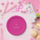 Upload Logo Add Text Pink Solid Colour Modern Elegant Template 7" Round Paper Plate.