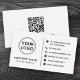 White or custom colour, modern, elegant and professional business card design with template fields for name, company name/title, logo (photo or other graphic) and contact information including social media icons and website URL. Add your own QR code to the back. Change background colour, move and resize elements with the customisation tool.