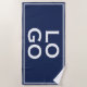 This custom beach towel features a navy blue background with a white frame. A sample logo is placed in the centre. You can personalise the mat and add your own custom company or professional business logo, or your own image of your choice.