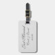 Custom luggage tag is shown in a light grey colour with Just Married text.