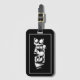 Custom luggage tag shown in a black colour Vegas print design.