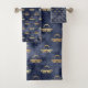 Custom Luxury Gold Bee Navy Night Celestial Bath Towel Set