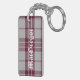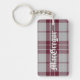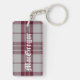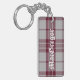 Stylish key chain done in the classic maroon and light grey MacGregor Scottish tartan plaid pattern. Bold white old world style text, on the front and back, is ready to personalise for yourself or as a great gift idea.