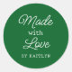 Customisable "Made with Love" sticker in forest green. Just add your name.