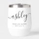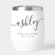 Custom Maid of Honour Script Calligraphy Name Thermal Wine Tumbler. Easy to customise elegant script typography monogram. Perfect wedding party or bridal party accessory gift idea!