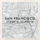 Shown for San Francisco, this template coaster features a custom map of San Francisco, California in grey tones with the city displayed as "San Francisco" in black script along with custom coordinates presented as latitude and longitude in coordinating modern typography.
