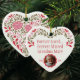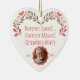 Honour the memory of a loved one with this elegant memorial Christmas ornament featuring a custom photo. This heart-shaped ornament is adorned with a beautiful floral design, symbolising love and remembrance, making it a unique and lasting tribute. The memorial ornament with pictures can be personalised with a cherished image, transforming it from a simple decoration into a photo ornament that keeps precious memories alive. As a personalised memorial ornament, it's thoughtfully crafted for those who want to celebrate and remember the lives of those they miss, especially during the holiday season.