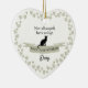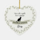 This memorial ornament features a personalised pet name with green hearts.