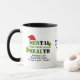 Stylish Custom MEN WHO TALK HEAL Christmas Mental Health coffee mug with CUSTOMIZABLE text. A motivational coffee mug promoting men's mental health, and encouraging men to talk - especially during the Christmas holiday season. The design shows the words MENTAL HEALTH combined with MEN WHO TALK HEAL in green with red santa hat and holly. There is a placeholder Scripture verse from Ecclesiastes, which is CUSTOMIZABLE, so you can personalise with your name, organisation or text of your own choice. Other colours and non-Christmas versions available, or contact me at bereandesigns@gmail.com for extra customisation or branding requests. Choose from a wide selection of original Men Who Talk designs by Berean Designs.