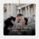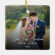 at christmass as a hanging decration for the chritmass tree.. its white porcline or cramic but very well made with added photo on one side.. also has a lovley red bag to keep it in.. execlent printed text in bold and black stands out well aganst the blue background of the photo.