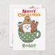 Custum text funny Santa in a an adorable polka dots mug white and green note card. Modern funny cute watercolor Chirstmas card for kids.