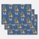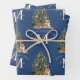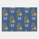 Custom Merry Christmas Monogram Tiger & Tree Blue Wrapping Paper Sheet