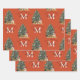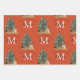 Custom Merry Christmas Monogram Tiger & Tree Red Wrapping Paper Sheet