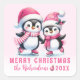 Custom Merry Christmas Pink Ice Skating Penguins Square Sticker