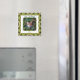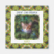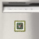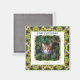 Custom Fun Jolly Green and Festive First Christmas Photo Picture Frame Square Magnet. A colourful and bright fridge magnet. Replace the photo and text with your own pet picture to celebrate your Yuletide memories of your Fur Baby. Give as a stocking filler keepsake gift to family and loved ones. In warm winter colours of green, brown and grey. With hints of dark blue. A budget friendly present for cat and dog moms. A merry and bright colour block pattern frame borders the picture. Based on colourful, traditional designs. Use as a cheap way of decorating the Christmas or home office. Have a maximalist dopamine decor Christmas!