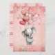 Happy Valentine's Day romantic card with a personalized message and a elephant illustration with heart balloons. Pink and red background with a plaid backing.