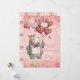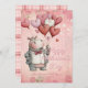 Happy Valentine's Day romantic card with a personalized message and a hippopotamus illustration with heart balloons. Pink and red background with a plaid backing.