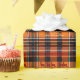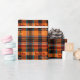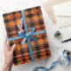 This Christmas wrapping paper features a festive plaid design in warm red, orange, green, and black tones, adorned with small reindeer silhouettes to add a touch of holiday spirit. The text is customisable, allowing you to personalise each gift with a unique message, or you can delete the text entirely if you prefer a simpler look. This aspect makes the wrapping paper and your personal message suitable for many occasions, including Christmas. This classic and cosy pattern is perfect for adding a traditional holiday feel under the Christmas tree.